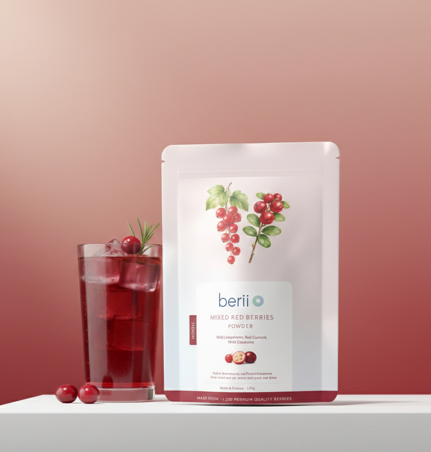 結合六款強大抗氧化莓果,包括野生極地藍莓、芬蘭黑加侖子、不老莓、野生越橘、芬蘭紅加侖子及野生蔓越莓。